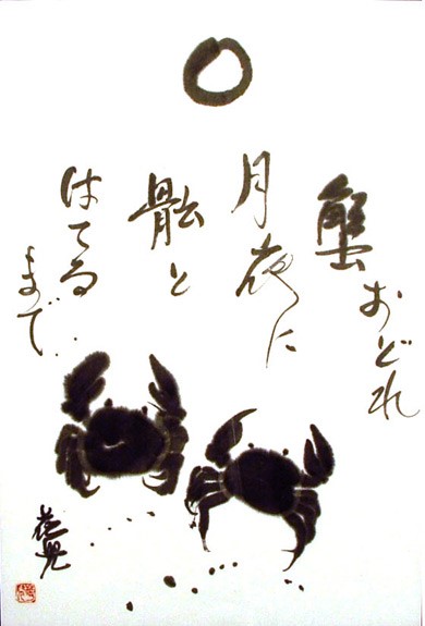 Although haiku was just one of his many special gifts, Kaji Aso very often expressed the wisdom of his beliefs in haiku and did a lot of haiku illustrations. He organised and took active part in many seminars and lectures about Japanese art, haiku, sumi painting and calligraphy.